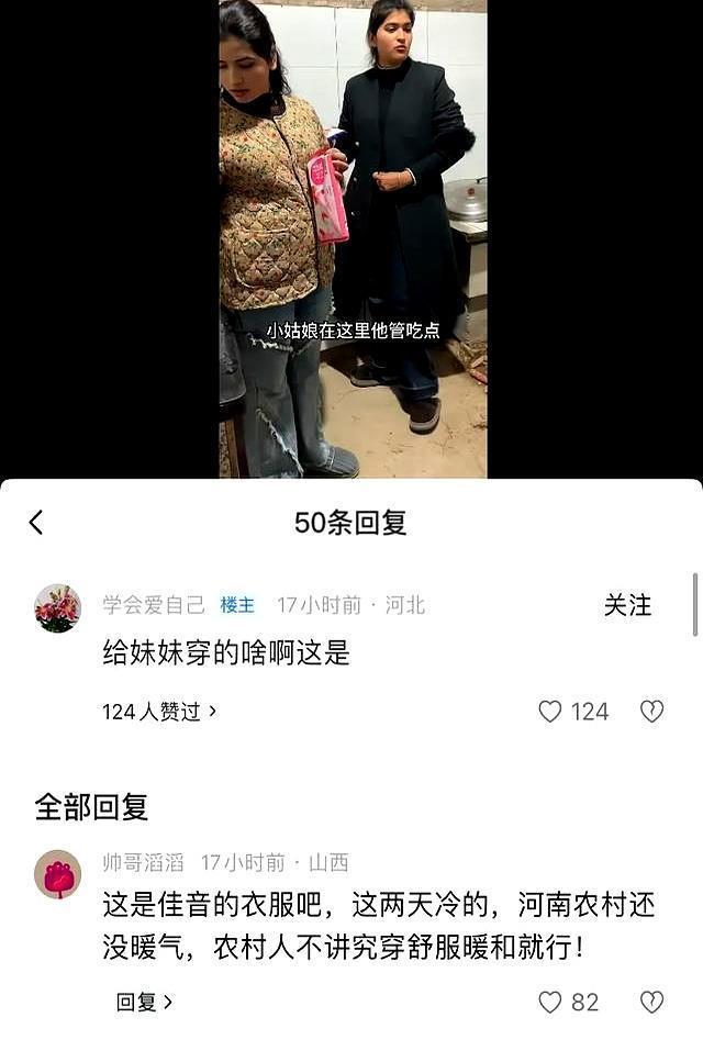 ```markdown佳音妹妹来中国穿旧棉袄被嘲寒酸,网友吵翻天!